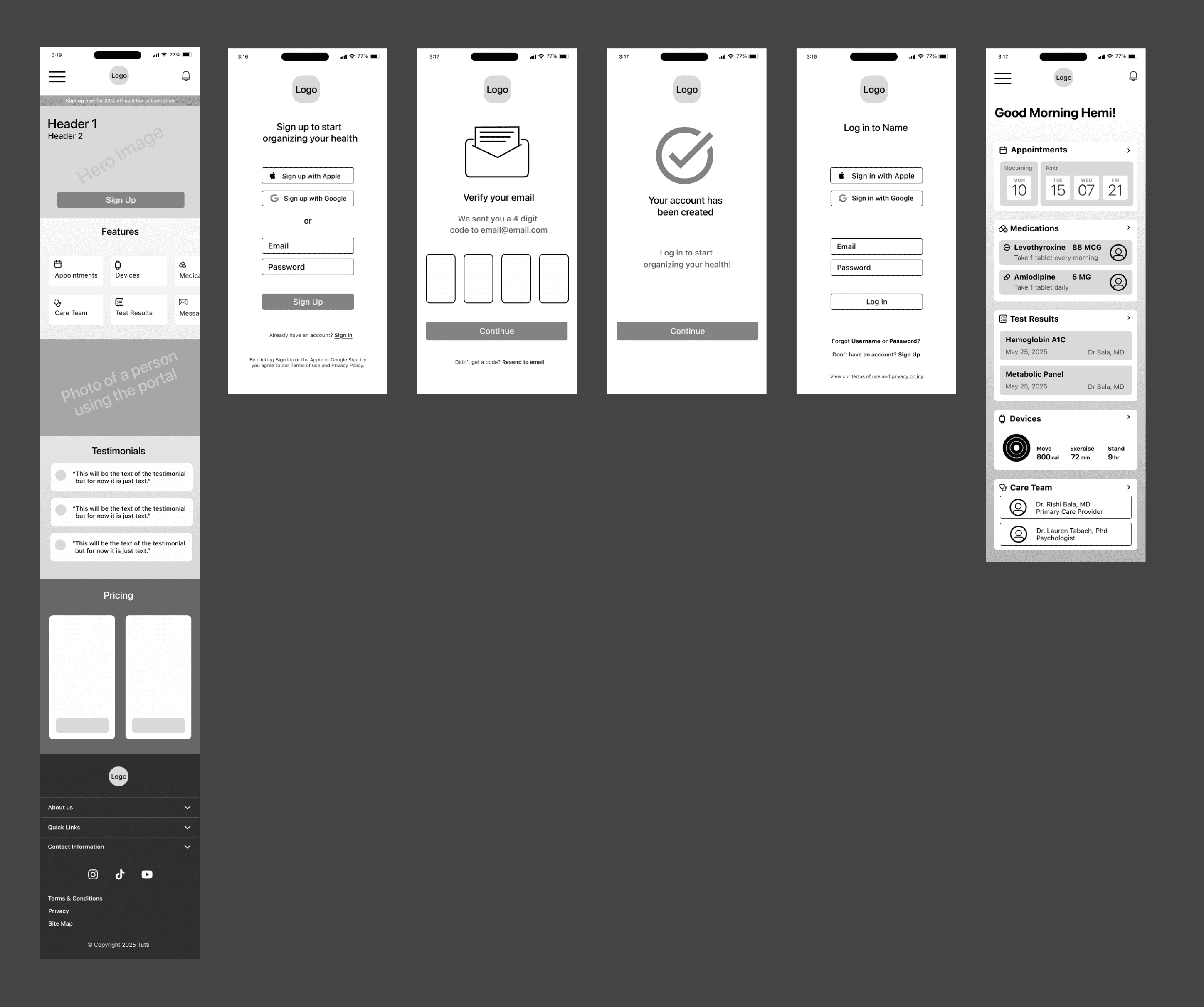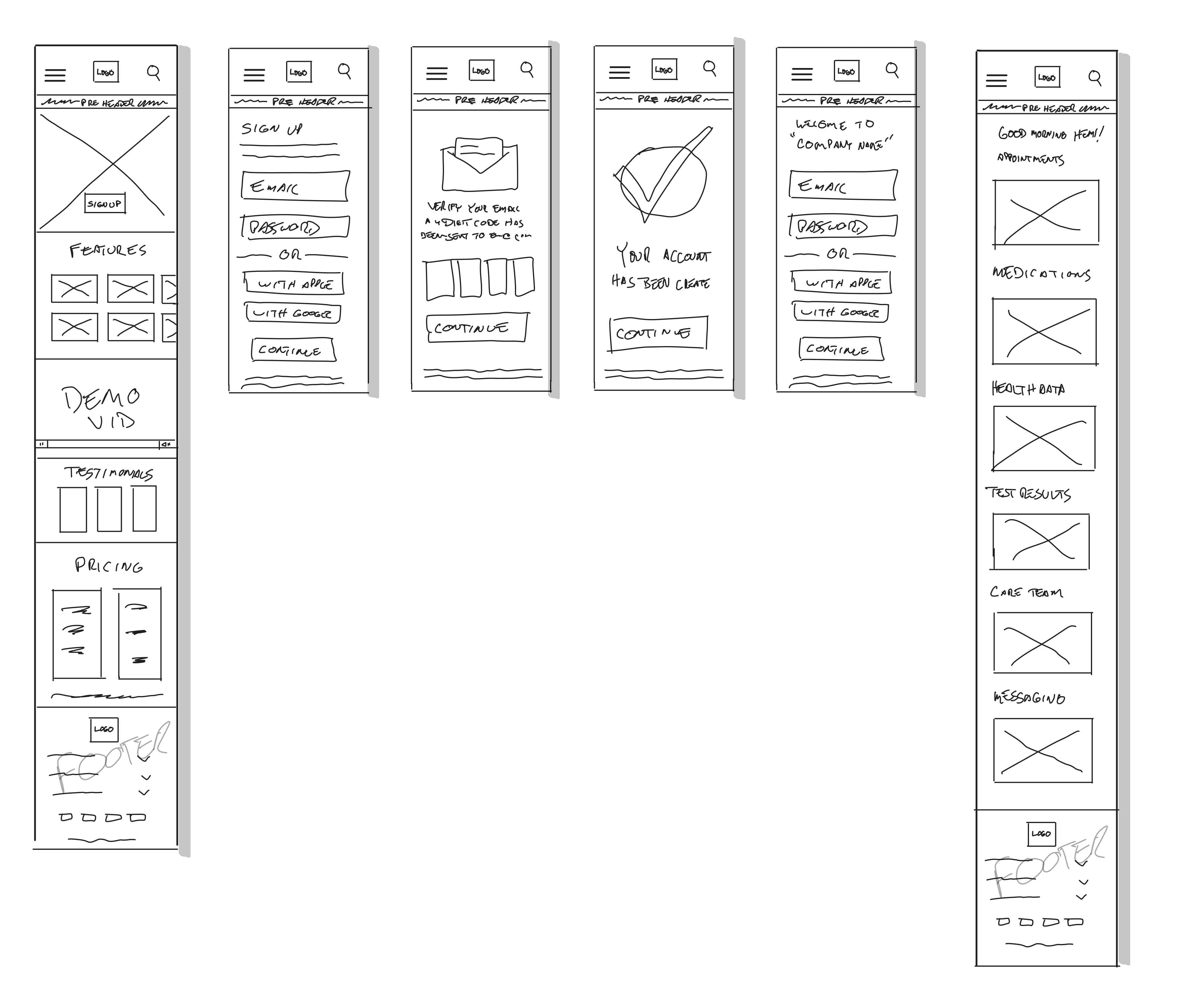 The next step was to determine some user flows. The sign up step is important and I felt it should be dialed in quickly, that became my first user flow. The second user flow was more specified with adding or editing a medication.