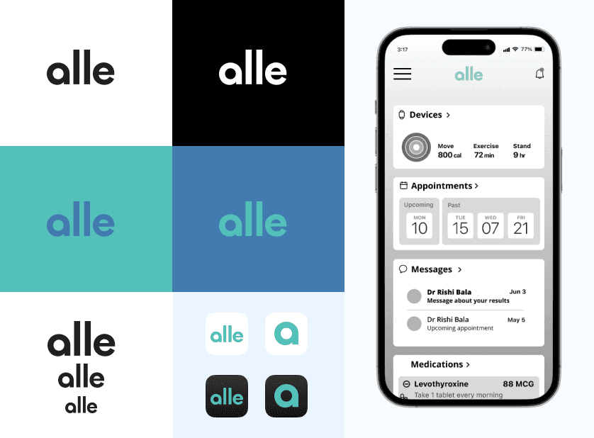 The color palette for alle was found after doing research of palettes used in the medical field and understanding color psychology in health care. Thanks to an article from the National Library of Medicine, which is available here.