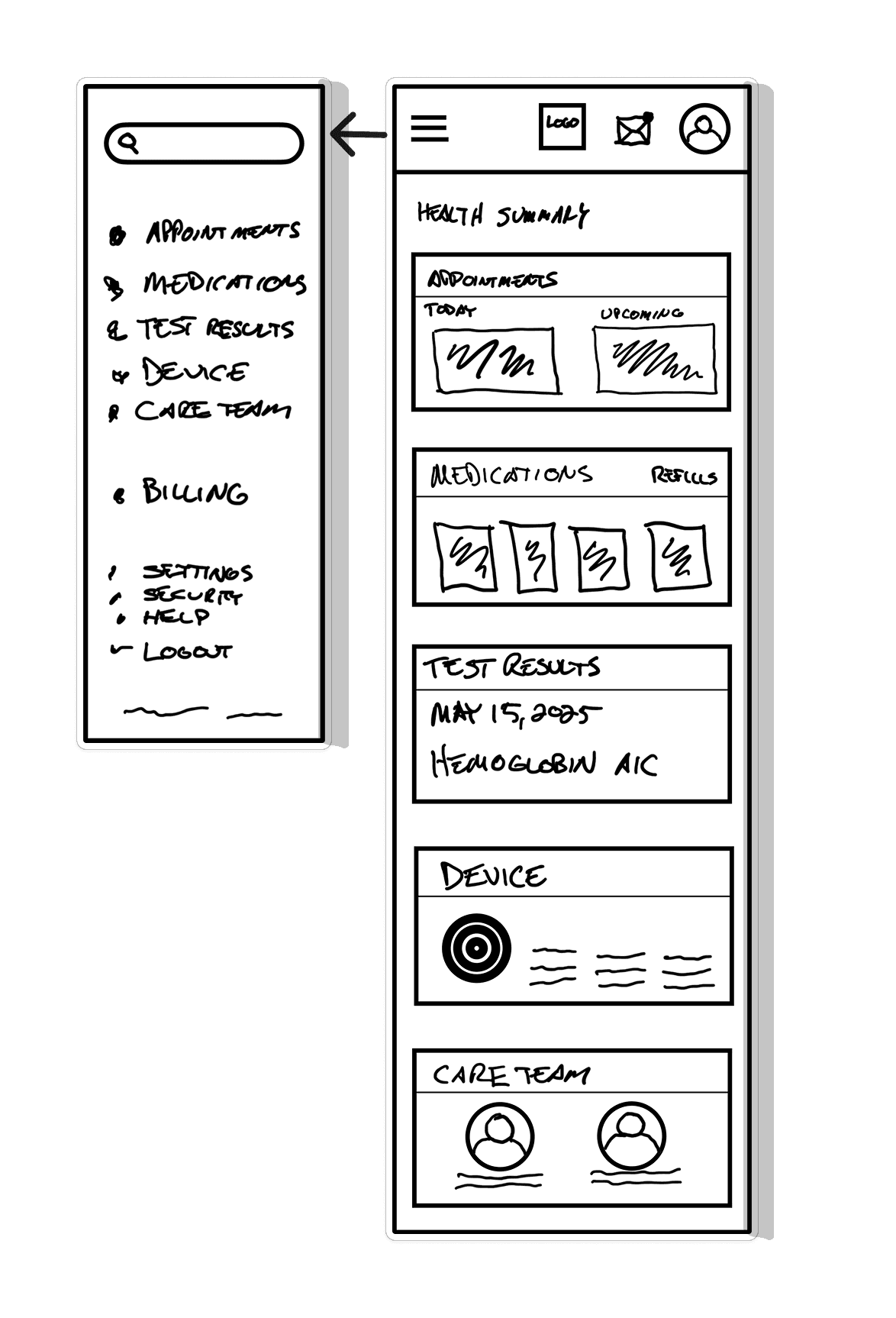 These interviews revealed that ease of use, messaging their doctors, working with health devices, and scheduling were top needs.