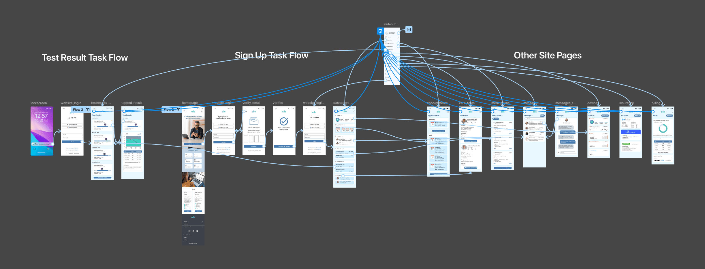 The prototype focused on 2 flows: 1-Signing Up 2-Viewing a Test Result from a Notification.