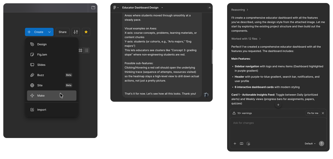 Using Figma Make to quickly explore layout directions based on earlier sketches.