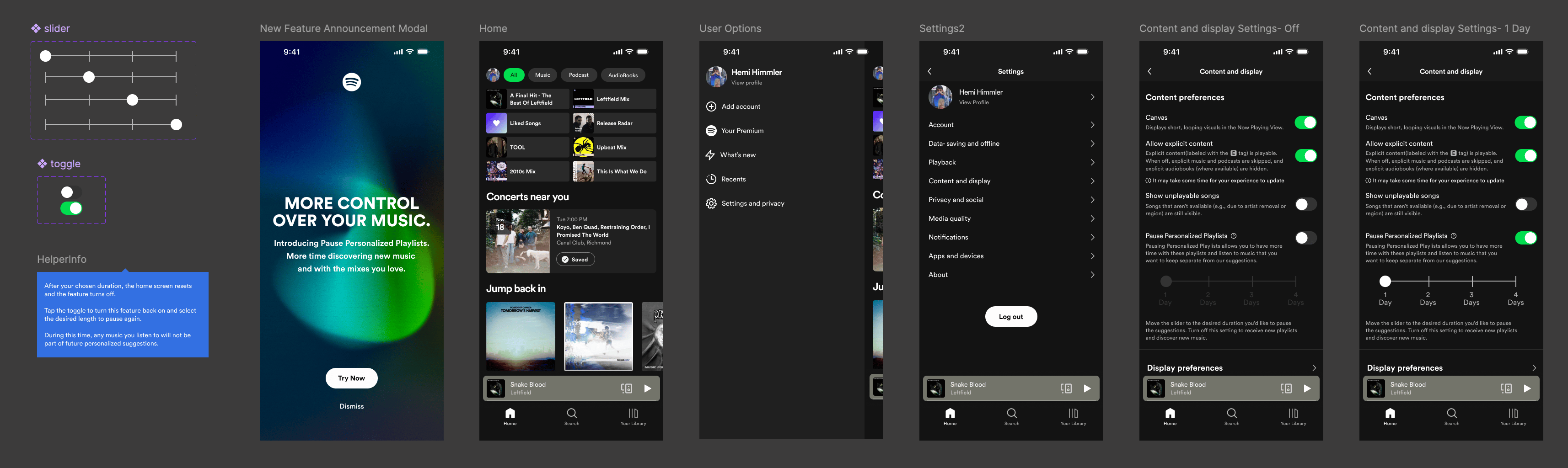 Early terminology such as “Freeze Algorithm” created confusion. Renaming it to “Pause Personalized Playlists” improved comprehension and felt more aligned with Spotify’s voice.