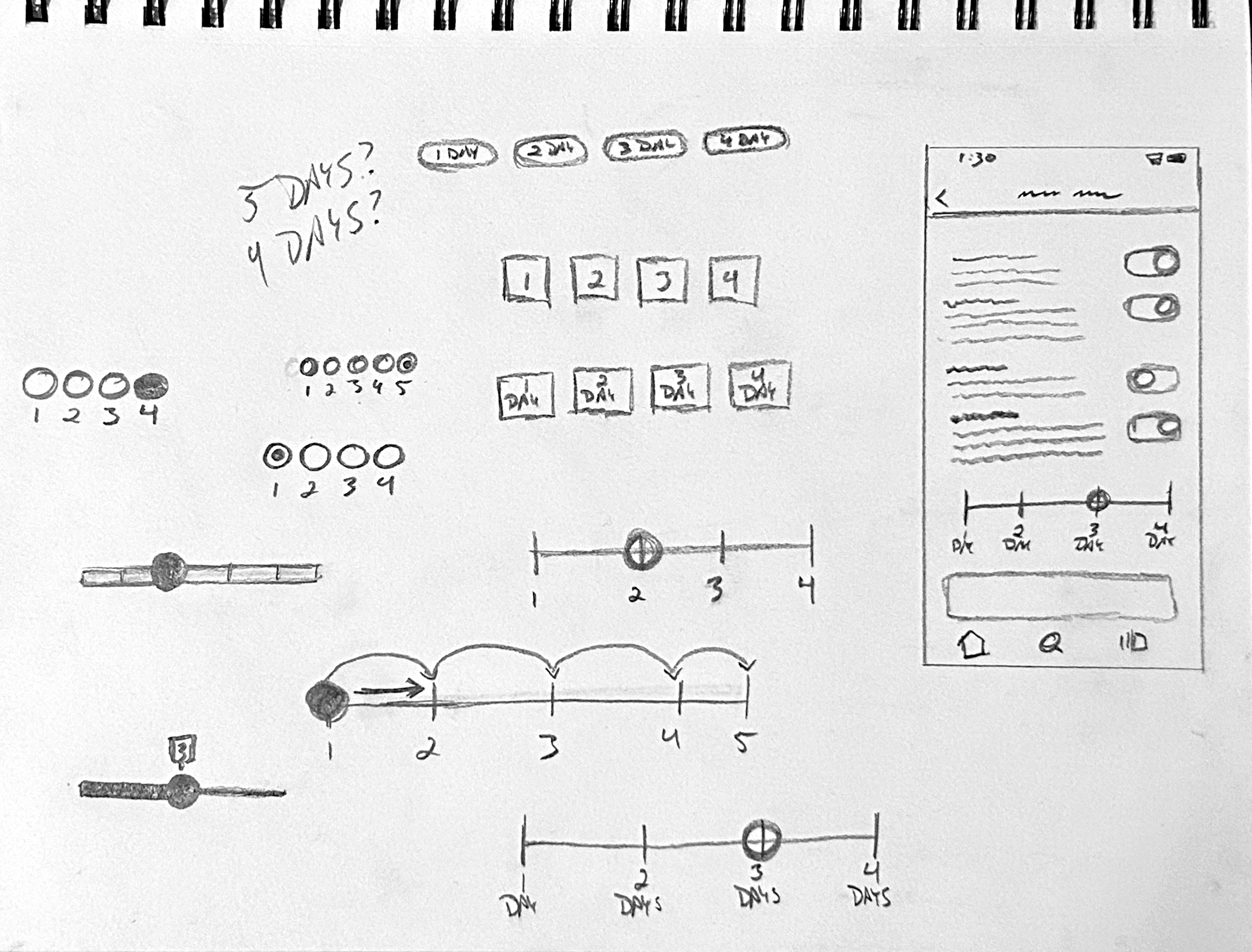 Button and Slider exploration sketches for the setting